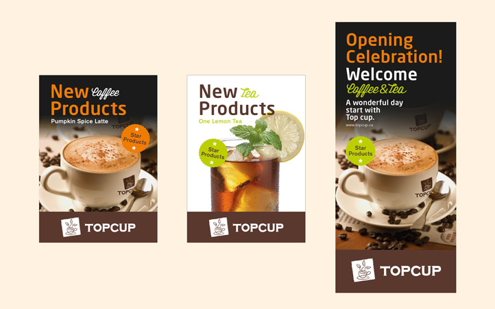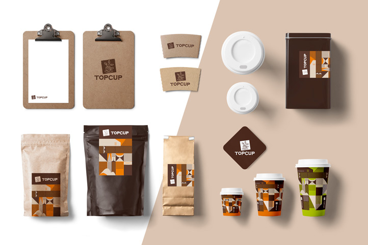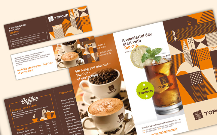 美御有幸成為TOPCUP的合作伙伴,為其塑造整體品牌形象。整個項目作業(yè)歷時2個月左右。TOPCUP品牌整體形象以褐色為主,整個logo設計以圖形加文字形式,圖形以咖啡杯和茶葉的形象演繹,形象而又簡易,完美的詮釋了“以咖啡形式傳承茶文化”的品牌理念。