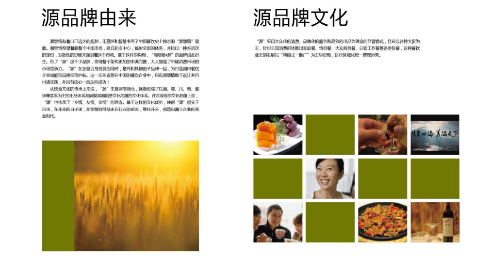 通過對(duì)湘鄂情.源的品牌研究,美御從整體的形象的策劃開始著手,給“源”制定了最合理的品牌可持續(xù)發(fā)展計(jì)劃。塑造品牌形象,促成品牌認(rèn)知,最終實(shí)現(xiàn)“源”品牌的發(fā)展之路。我們采用黑白色調(diào)為主的經(jīng)典懷舊的組合風(fēng)格,同事結(jié)合簡(jiǎn)約時(shí)尚的元素,用清晰的綠色裝點(diǎn),力在體現(xiàn)健康、綠色、有機(jī)無(wú)害的飲食理念,整體給人以簡(jiǎn)潔、時(shí)尚、大方的感覺。