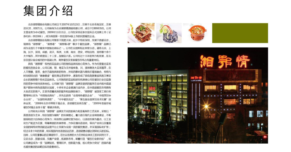 北京湘鄂情餐飲管理有限公司前身為北京湘鄂情酒樓有限公司,成立于1999年9月。公司主營(yíng)業(yè)務(wù)為中式餐飲。2009年11月11日,公司在深圳證券交易所正式掛牌上市(證券代碼:002306),成為我國(guó)第一家在國(guó)內(nèi)A股上市的民營(yíng)餐飲企業(yè)。源作為國(guó)內(nèi)首家民營(yíng)企業(yè)餐飲上市公司旗下大眾消費(fèi)品牌,以簡(jiǎn)練時(shí)尚元素體現(xiàn)源餐廳定位于大眾消費(fèi)品牌。