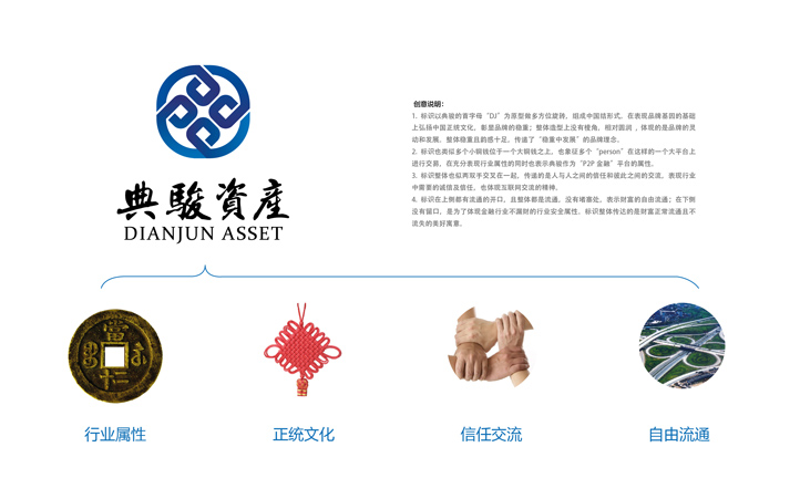 2.整體標(biāo)志用藍(lán)色系,傳遞出“典駿資產(chǎn)”平臺的安全、嚴(yán)謹(jǐn)和科學(xué)屬性;
