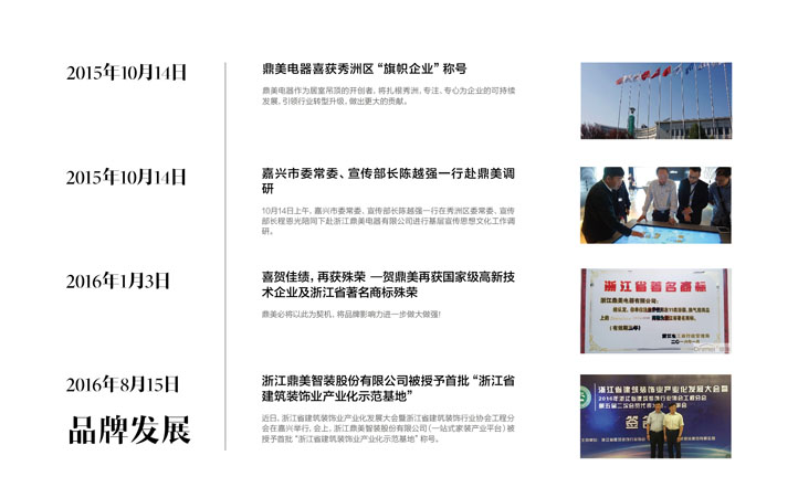 浙江鼎美電器有限公司位于長三角腹地——浙江嘉興,是集科研、設計、制造、營銷、智能化于一體的著名綜合性吊頂企業(yè)。經過十多年發(fā)展,鼎美依托國際化的管理經營理念,專業(yè)化的研發(fā)設計,規(guī)?;纳a物流,現(xiàn)已發(fā)展成一家品牌運作的現(xiàn)代化公司。