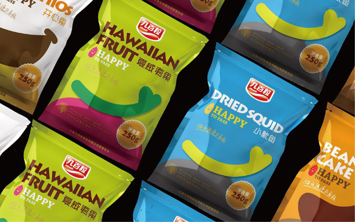 產(chǎn)品的包裝是最直白的銷售,包裝設(shè)計整個風(fēng)格形象統(tǒng)一,休閑食品系列運用“動態(tài)表情”個性/張揚/鮮明飽和的顏色和圖形,不僅符合休閑零食品牌的發(fā)展需求更加凸顯品牌形象。增加曝光量,促進銷售。