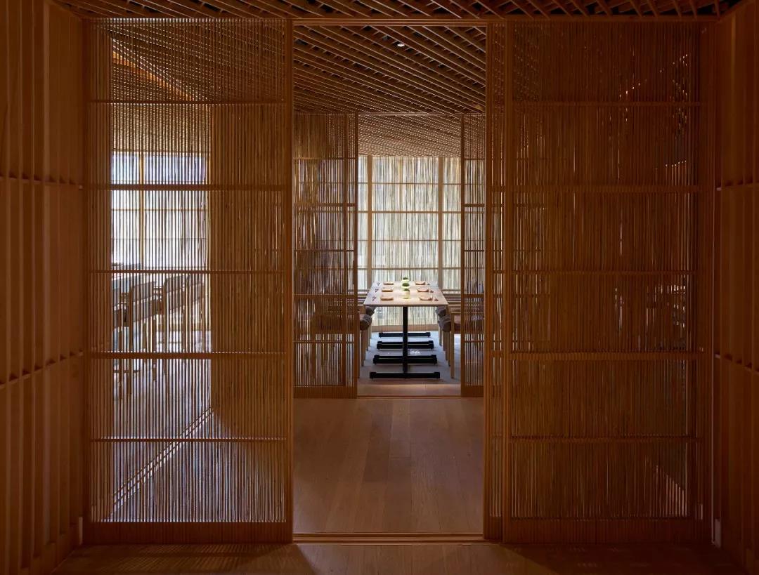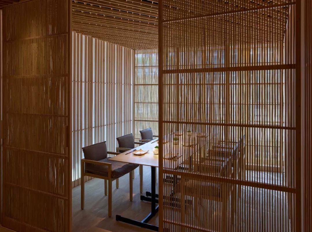 錯綜復(fù)雜的竹制天花板和嵌板完美呼應(yīng)了“自然花園”的主題,令用餐者和自然在這一建筑環(huán)境中也能密切相連。