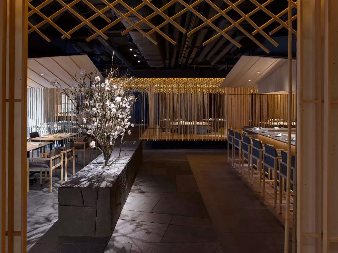 這家餐廳是由著名大師梁志天聯(lián)乘日本建筑大師隈研吾設(shè)計的,處處可見日式庭院的優(yōu)雅安靜。