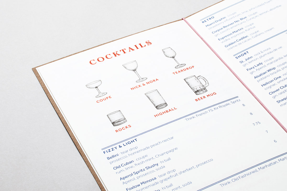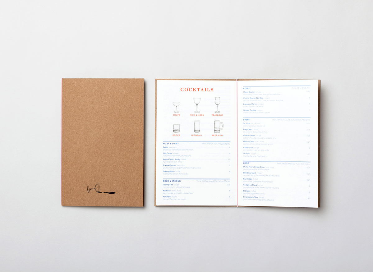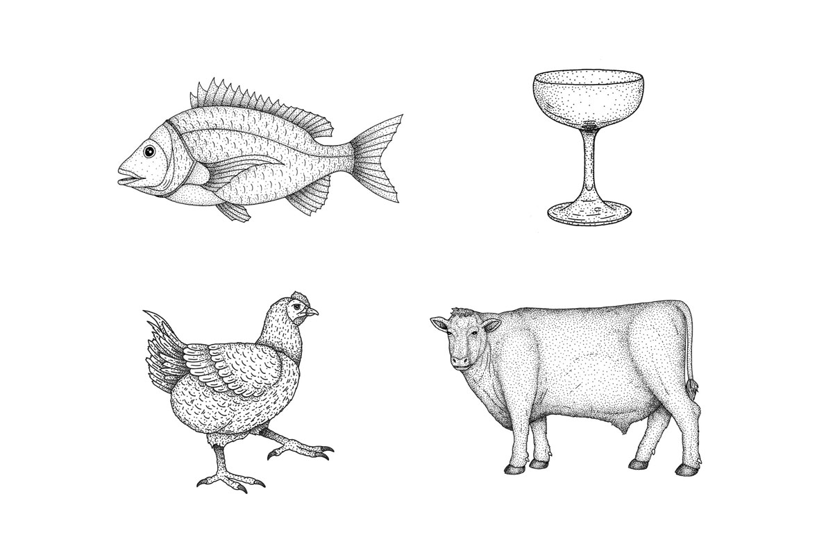 其中采用很多插畫,其風(fēng)格讓人聯(lián)想到維多利亞時代的版畫,但更具現(xiàn)代感。這些插圖中加入了幽默元素,這使餐廳能夠更多地談?wù)撈放莆幕囊幻?,而不會感到太枯燥?/p>