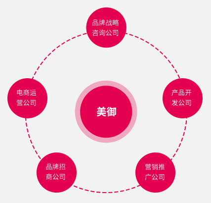 美御提供的服務包含了品牌戰(zhàn)略咨詢,產品開發(fā),營銷推廣,品牌招商,電商運營五位一體